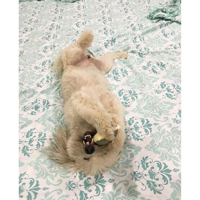 Because fresh sheets are fun to roll around in! #dogsofinstagram #cute
