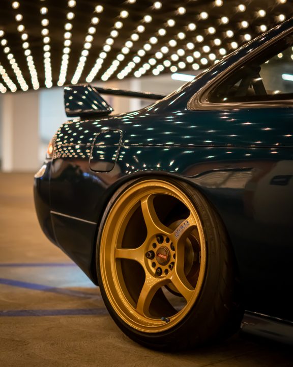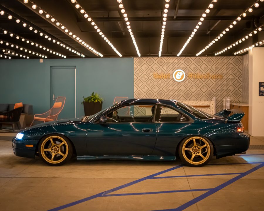 My friend Tito did a great job capturing awesome ๐ photos of Cookie the s14. The photos were taken at a parking garage in long beach. ๐๏ธ I love the green and gold color combination on the s14. This color combo was not intentional, I just happen to put on my spare gold gram light 57dr wheels. I can’t believe these wheels are now vintage/discontinued.